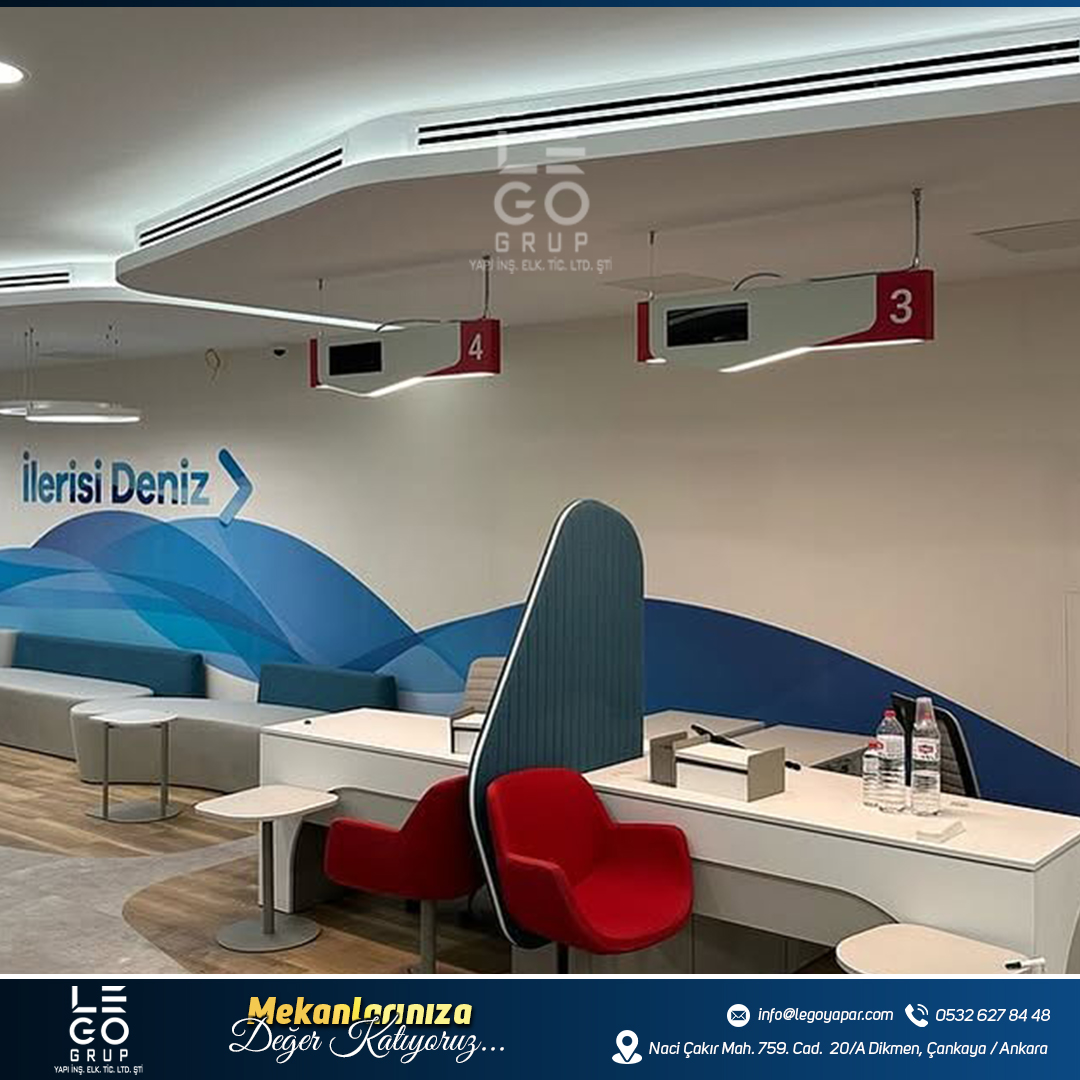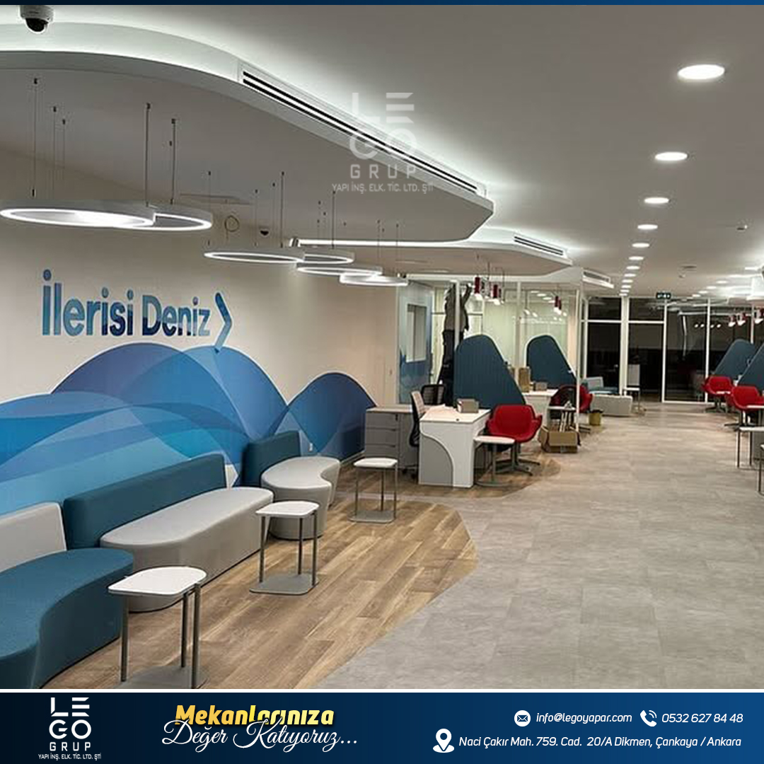Denizbank Karataş Adana Şubesi yenileme projesinde olduğu gibi, Lego Yapar uygulaması olarak Ankara ev yenileme, banyo yenileme ve mekan yenileme projelerinde de modern, güvenilir ve estetik çözümler sunuyoruz. Ankara tadilat alanında sektördeki uzman ekibimizle, işlevselliği ve şıklığı bir araya getiren yenilikçi mekanlar oluşturuyoruz.