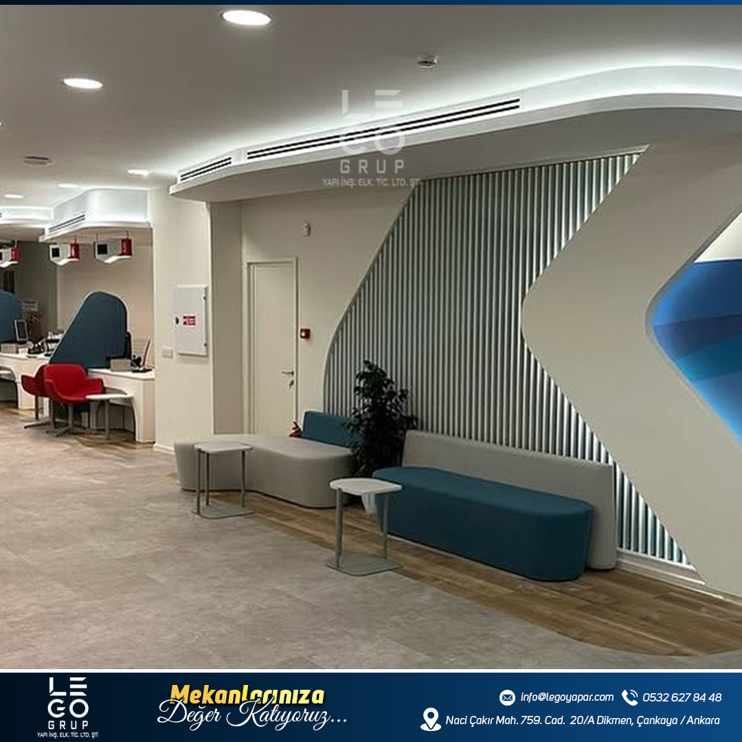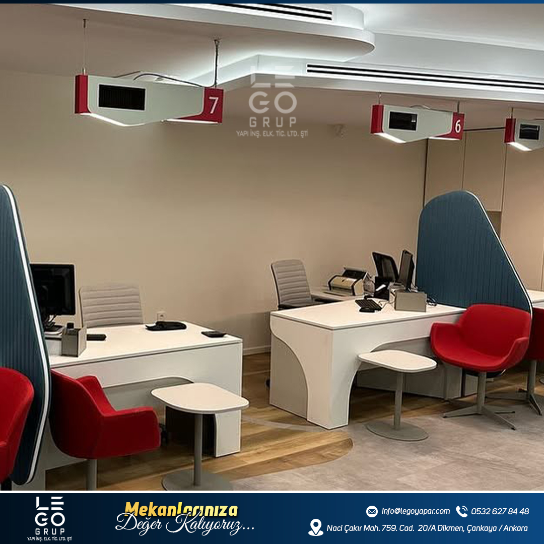 - Müşteri Deneyimini Artıran Ergonomik Düzenleme: Banka iç mekanlarını işlevsel ve kullanıcı dostu bir yapıya kavuşturduk.